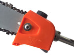 Chop Chop !   eSkde Universal Articulating Chainsaw Pruner Attachment.   Features Suitable for most 9 Spline / 26mm Shaft Power units. Compatible with the eSkde range of brush cutter systems...